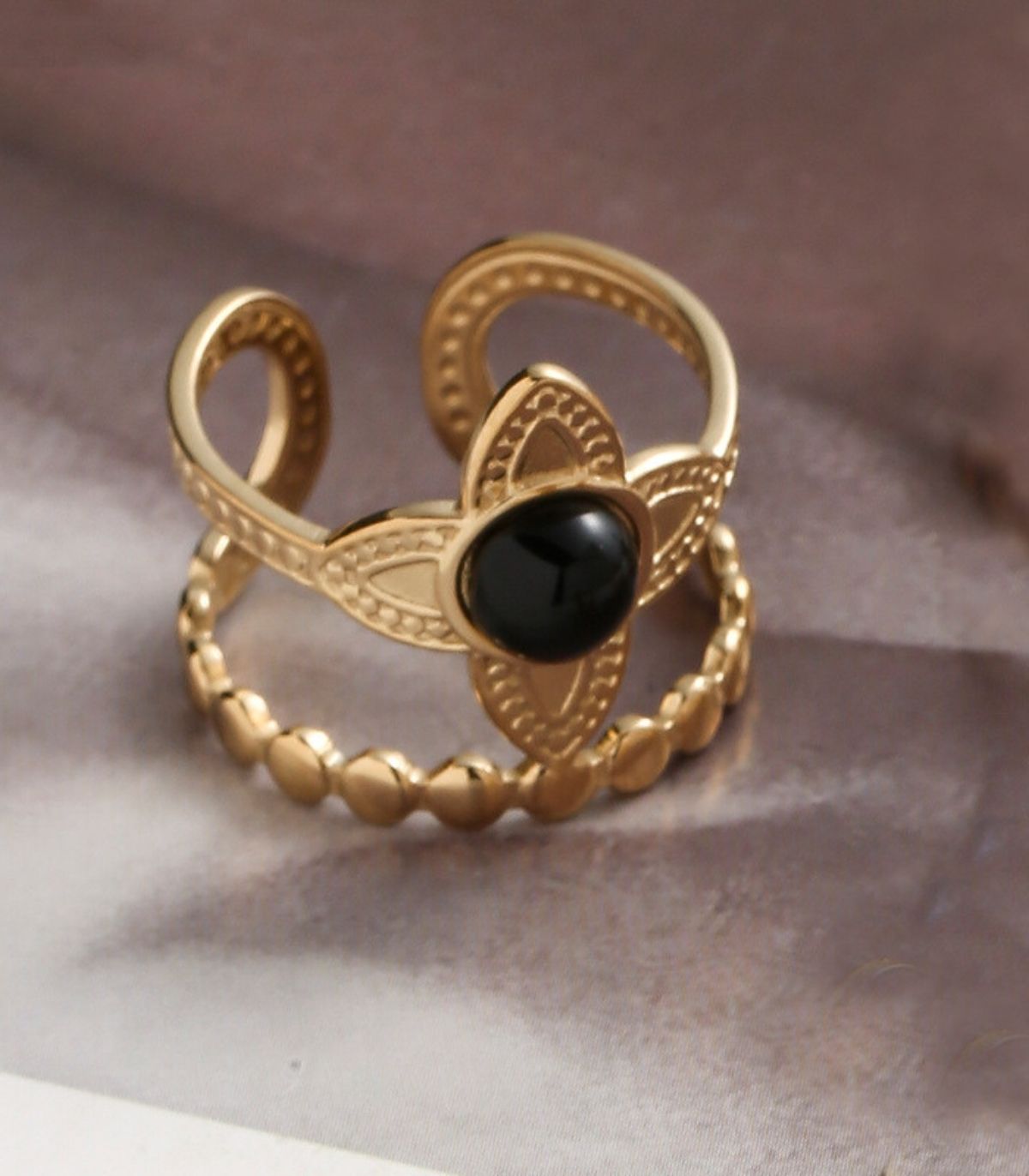 Anillo flor piedra negra