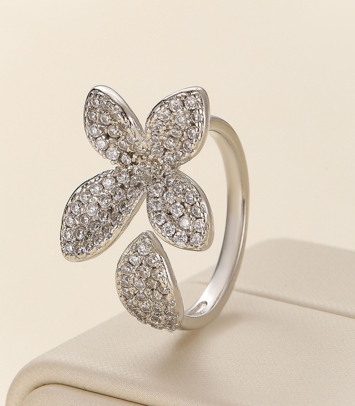Anillo silver diamond flower