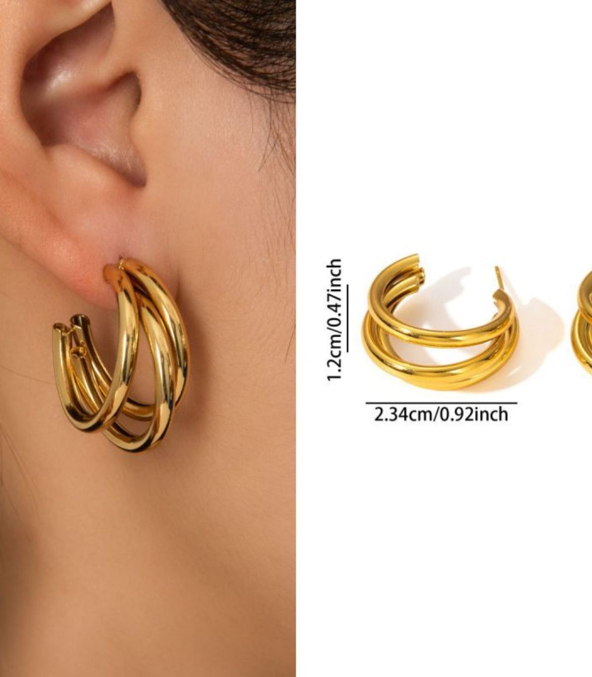 Aretes dorado triple