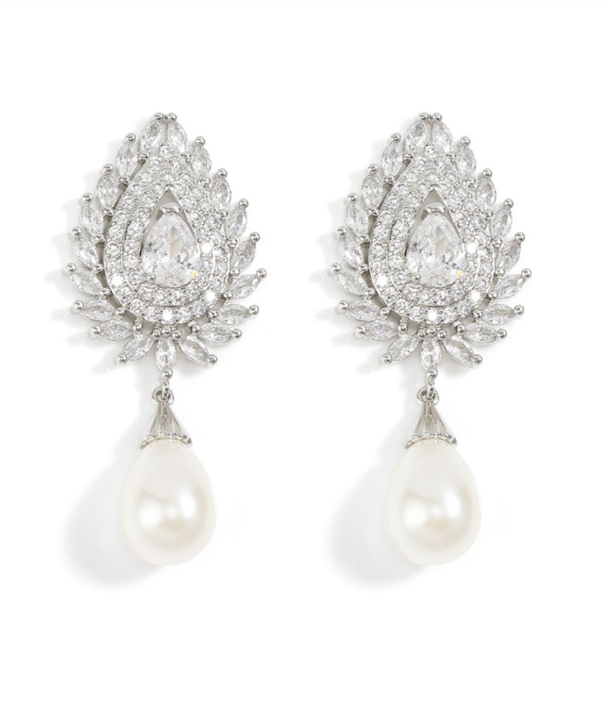 Aretes pearl diamond teardrop