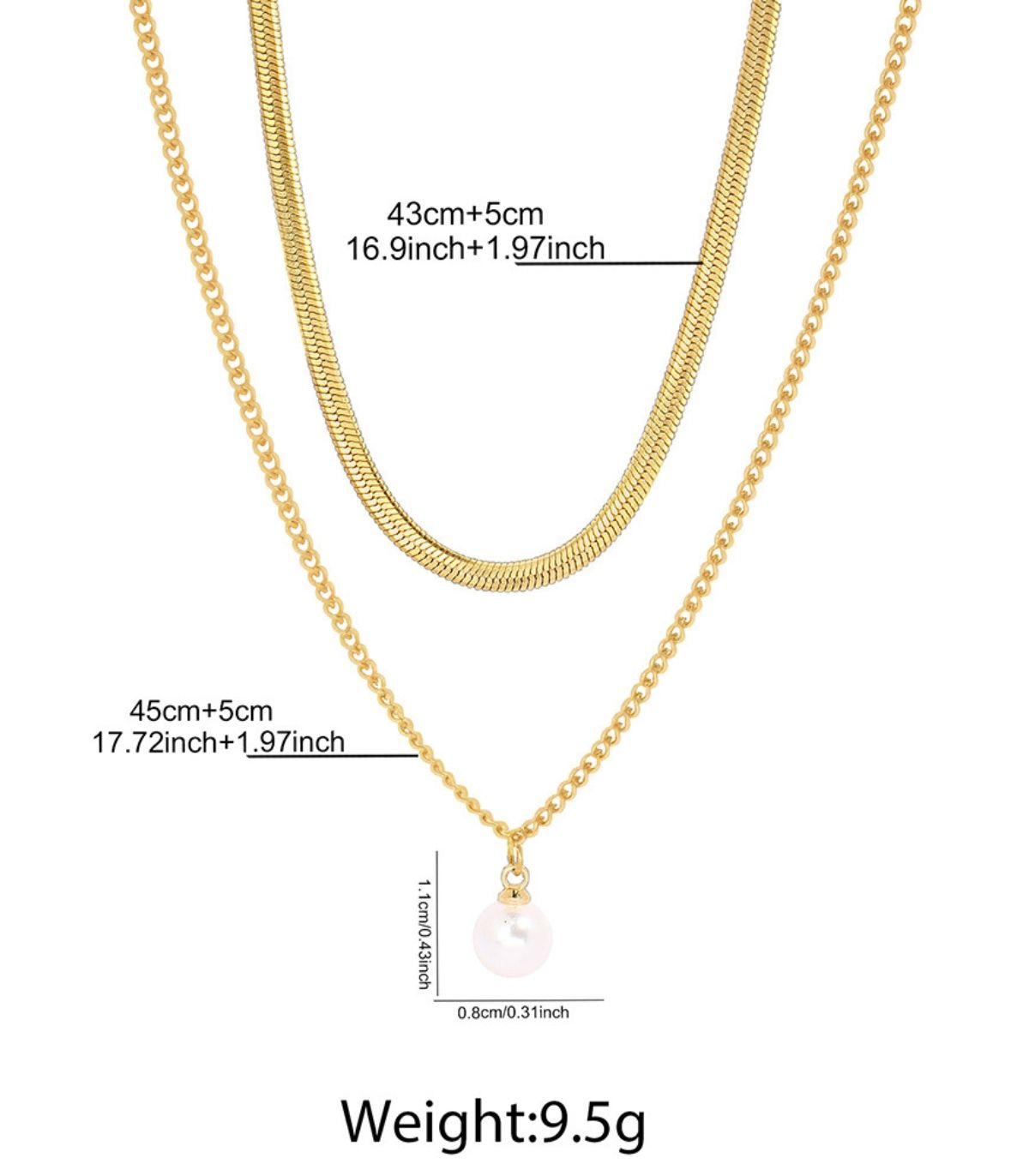 Collar gold doble con perla