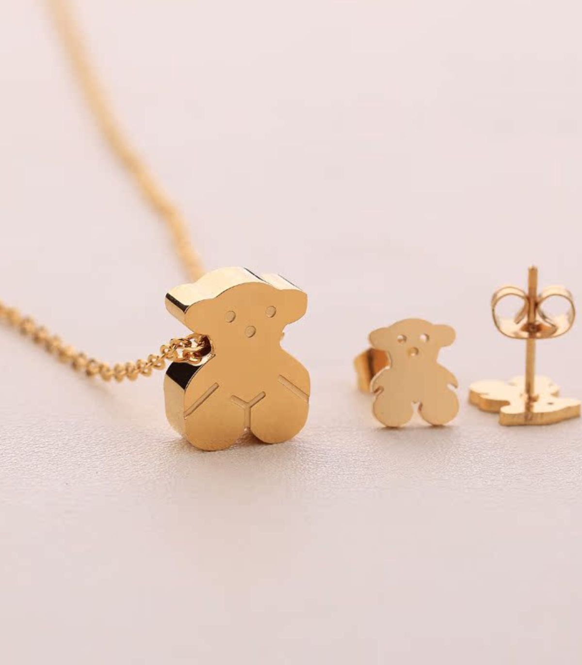 Collar y aretes set oso dorado