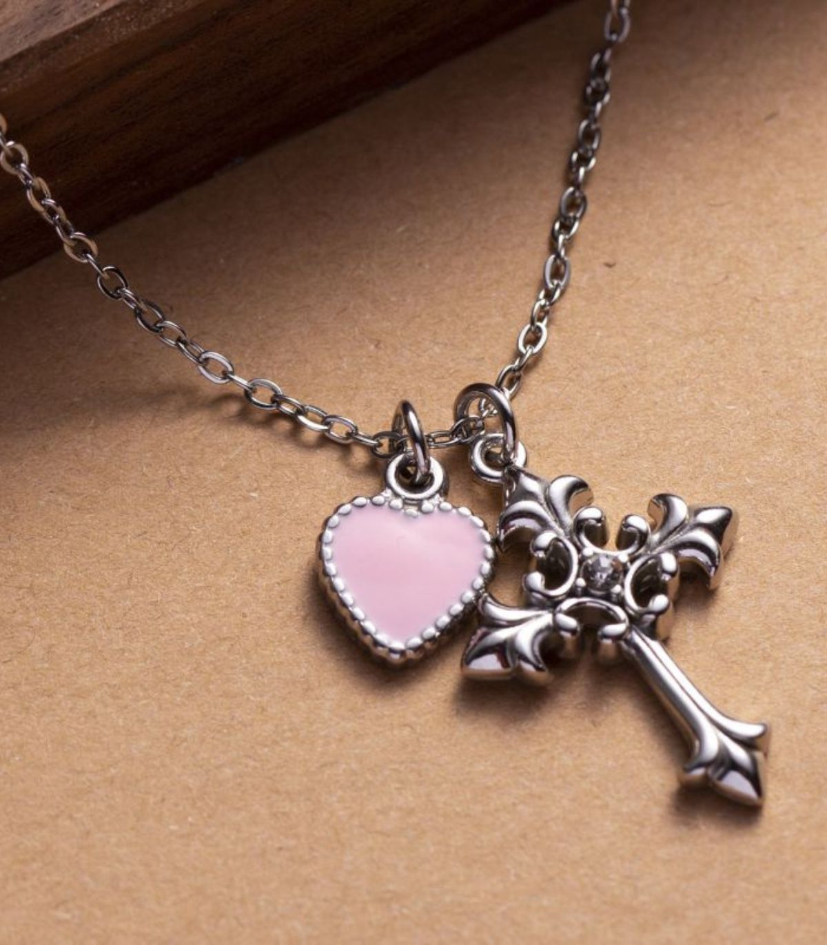 Collar cruz corazón rosa