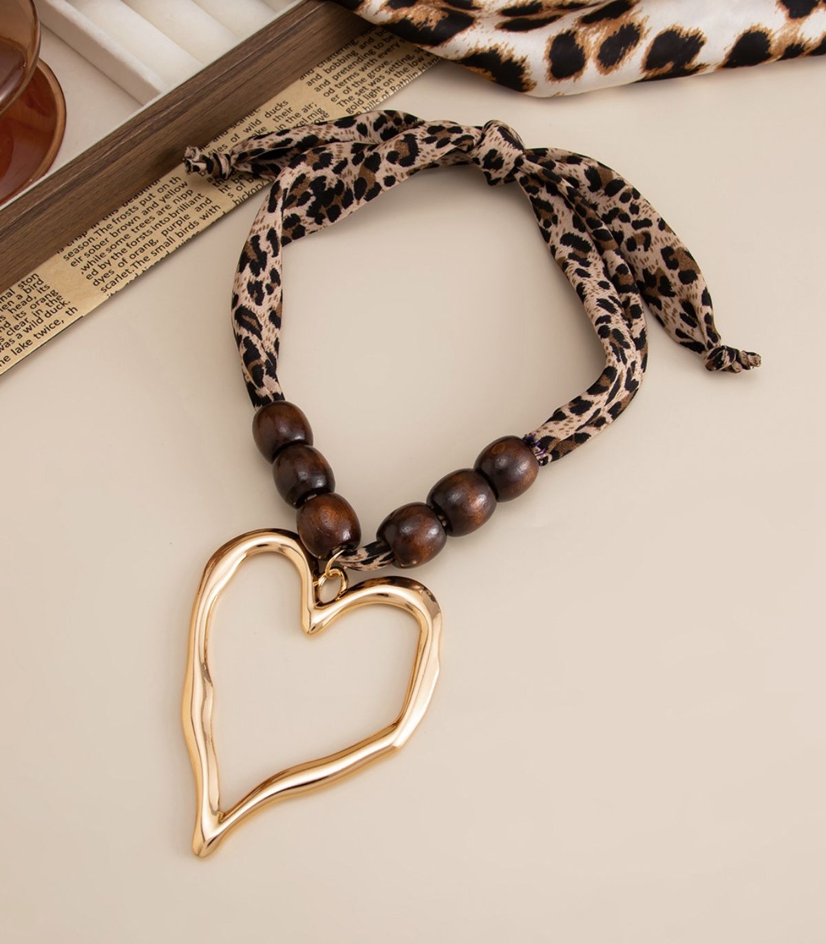 Collar brown heart leopard print